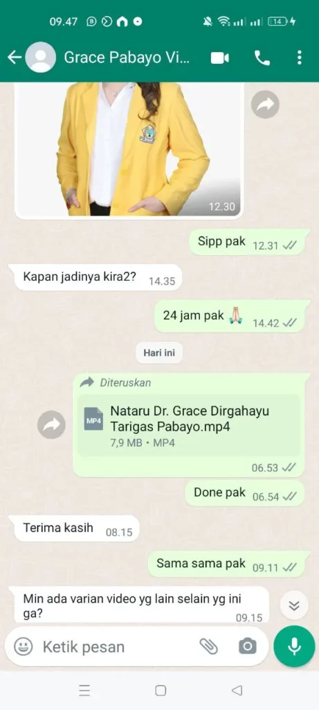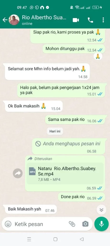 TESTIMONI PEMESANAN JASA VIDEO NATARU